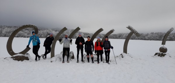 Dimanche matin 29 janvier nous étions 8 courageux sur la reco du haut du Marathon. La hauteur de neige ne nous a pas permis de beaucoup courir et nous a obligés à court circuiter Lemptégy et le Puy des Gouttes pour ne pas rentrer au milieu de l'après midi ! Les paysages étaient grandioses mais il faut espérer qu'il y ait moins de neige le 5 mars pour permettre à la plupart des coureurs de l'Ultra d'être finishers : 19km avec 880m D+.