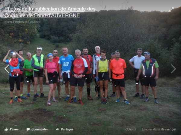 Ce mardi soir ,nous étions 17 à vouloir tester nos frontales et on s'en est bien servi ! Après un passage entre le Sarcoui et le puy des Goules, nous avons filé, mais pas en ligne droite, jusqu'au pied du Puy de Jumes que nous avons gravi ainsi que le Puy de la Coquille, ensuite il a fallu revenir le plus directement possible. Pour certains ça a donné 18km200 en 2h24 et d'autres 19km en 2h35 avec 550m D+. Super belle sortie mais coureurs très dissipés au moment des photos!