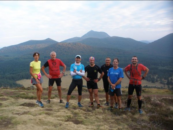 Hier, 20 septembre, nous étions 8 à l'entraînement de la Fontaine et à 19h45 la nuit s'invite déjà, ce qui signifie que les frontales sont pour bientôt ! Après être passés entre le Puy des Goules et le Grand Sarcoui, nous avons gravi le Puy des Gouttes pour le panorama et retour par Vulcania et le tour du Pariou côté Nord. 15km avec 490m D+ en 1h56
