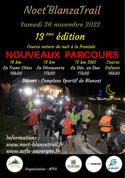 Le prochain Noct'BlanzaTrail aura lieu le samedi 26 Novembre 2022.