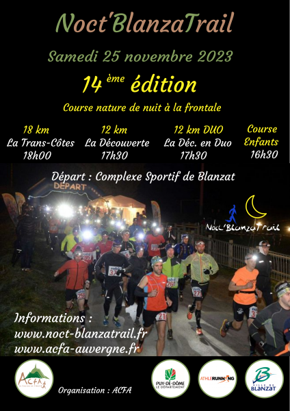 Le prochain Noct'BlanzaTrail aura lieu le samedi 25 Novembre 2023.